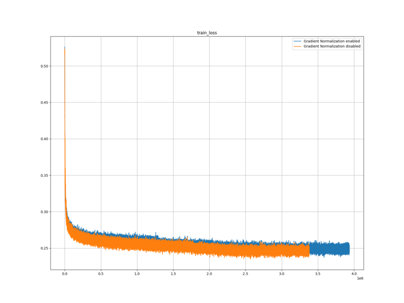 nnue-pytorch を用い、 halfkp_1024x2-8-32 ネットワークを学習させた。 その際、勾配を平均 0 標準偏差 0 に正規化して学習させた。